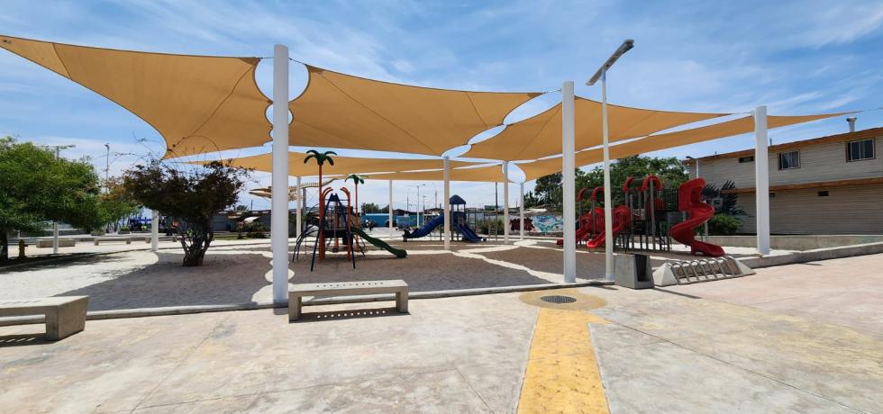 También se incluyó la implementación de sombreaderos en la zona de juegos infantiles, una medida clave para proteger a niños y niñas de la alta radiación solar presente en la comuna, y para entregar espacios más seguros, cómodos y apropiados para la recreación familiar durante todo el año.