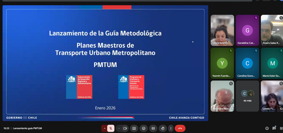 La Subsecretaría de Desarrollo Regional y Administrativo (Subdere), junto al Programa de Vialidad y Transporte Urbano (SECTRA), presentó la Guía Metodológica para la Elaboración de los Planes Maestros de Transporte Urbano Metropolitano (PMTUM), documento final elaborado por SECTRA con el apoyo técnico de Subdere, orientado a fortalecer la planificación integrada de la movilidad en las Áreas Metropolitanas del país.