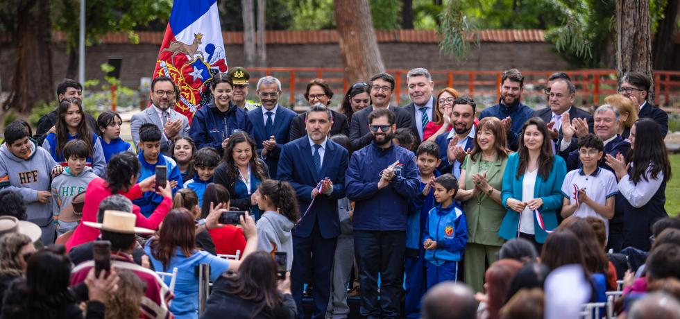 En compañía del ministro de Seguridad Pública, Luis Cordero; la ministra de Medio Ambiente, Maisa Rojas; los subsecretarios y subsecretarias de Desarrollo Regional y Administrativo, Francisca Perales; Seguridad Pública, Rafael Collado; y Prevención del Delito, Carolina Leitao; el delegado presidencial regional de Valparaíso, Yanino Riquelme; el general director (s) de Carabineros, Enrique Monrás; y el alcalde de San Esteban, Christian Ortega, el Jefe de Estado profundizó en que “un espacio como este no solamente es verde, sino también es salud mental, sino también es espacio de encuentro, es espacio de cohesión social. Este espacio es más seguridad”.